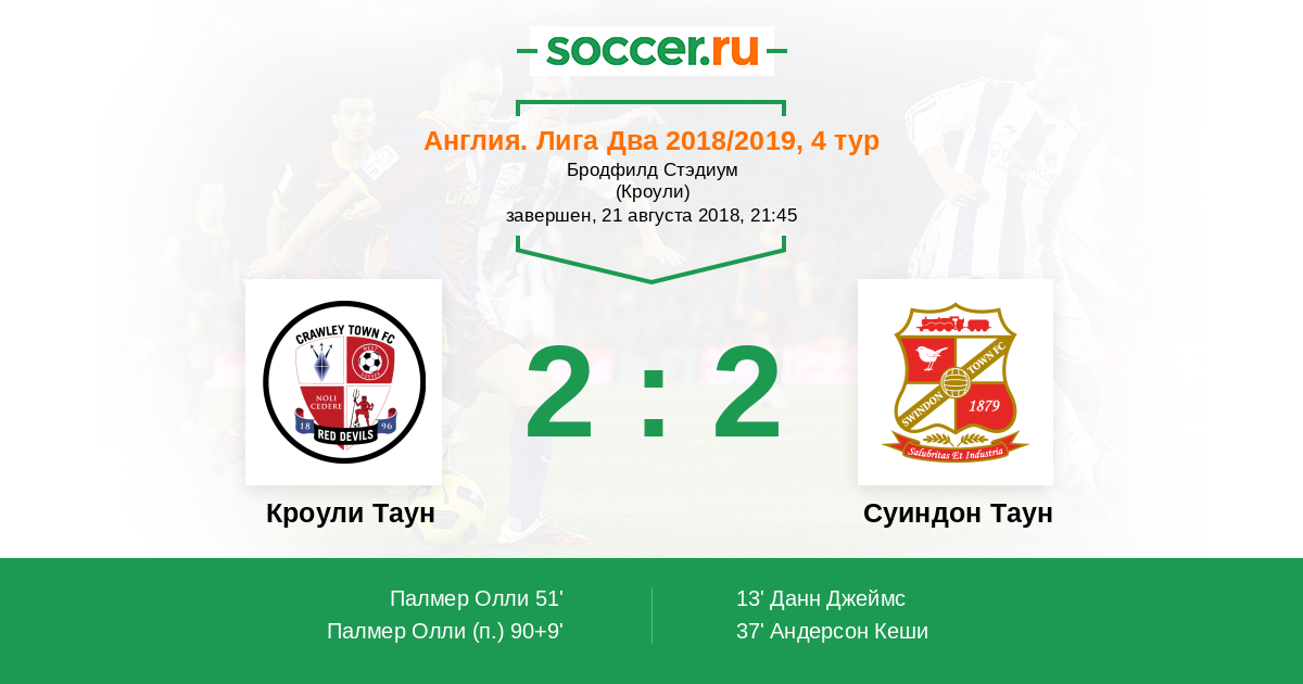 Кроули Таун - Суиндон Таун: обзор матча 21 августа 2018