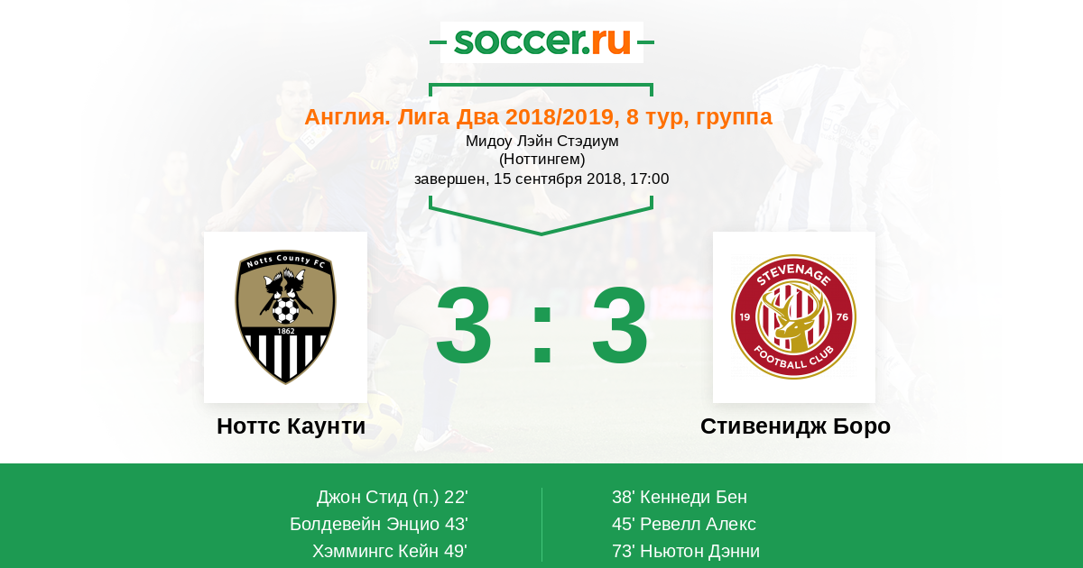 Ноттс Каунти - Стивенидж Боро: обзор матча 15 сентября 2018