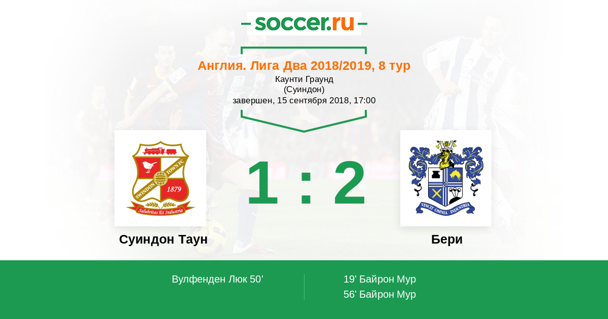 Суиндон Таун - Бери: обзор матча 15 сентября 2018