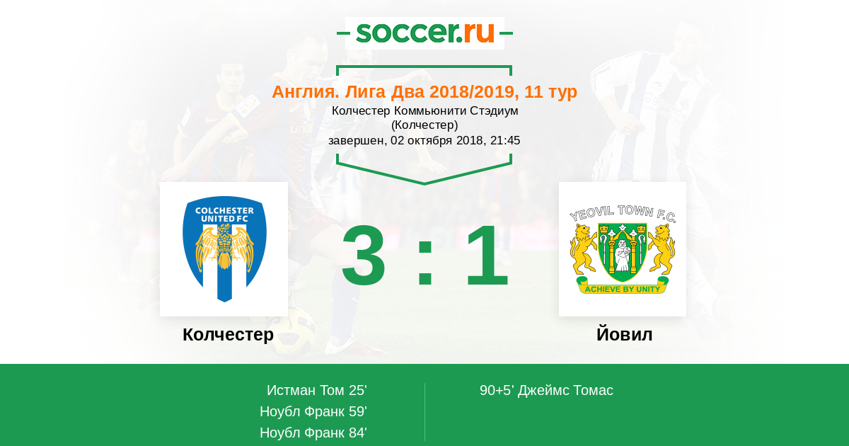 Колчестер - Йовил: обзор матча 2 октября 2018