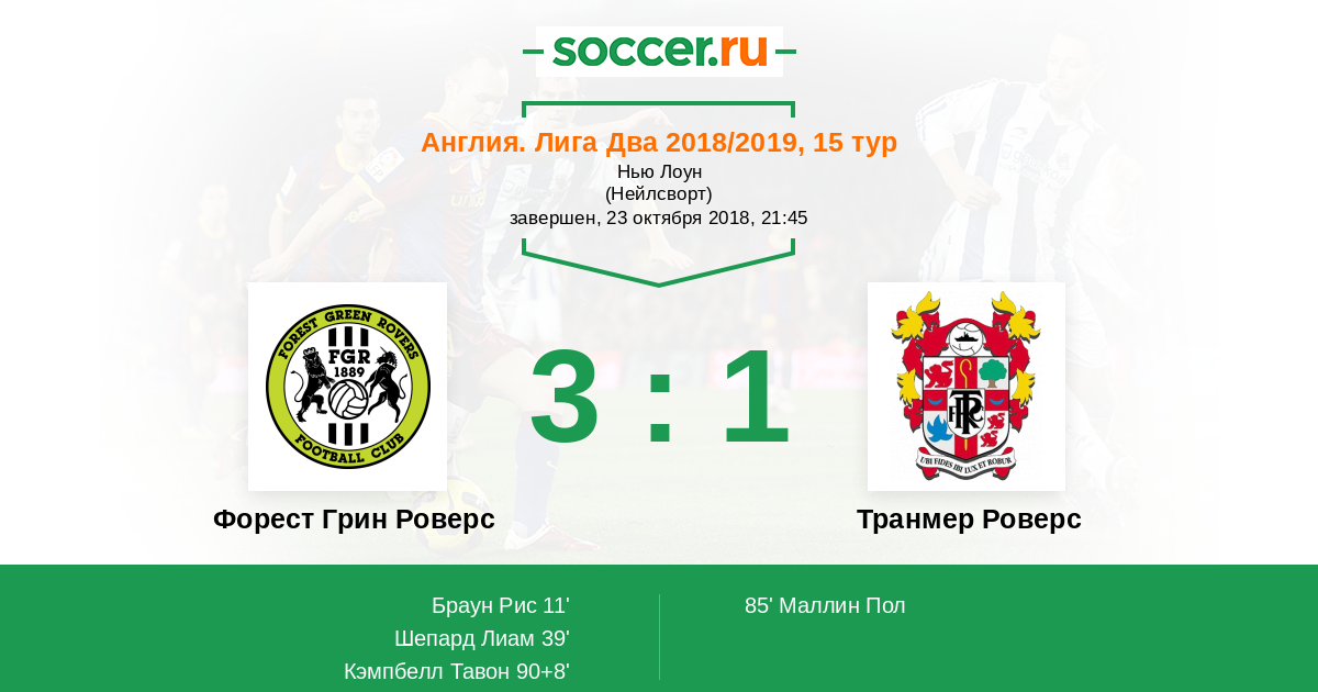 Форест Грин Роверс - Транмер Роверс: обзор матча 23 октября 2018