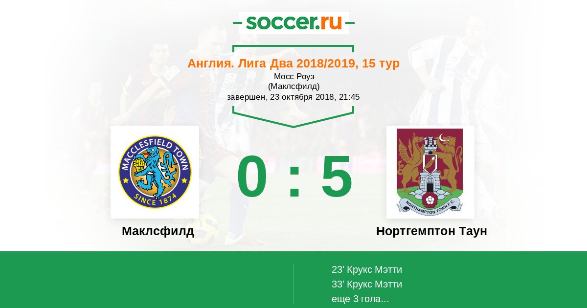 Маклсфилд - Нортгемптон Таун: обзор матча 23 октября 2018