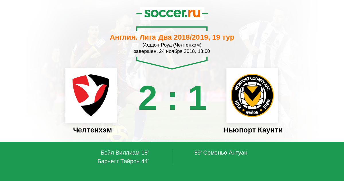 Челтенхэм - Ньюпорт Каунти: обзор матча 24 ноября 2018