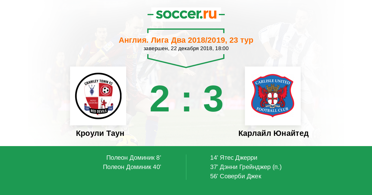 Кроули Таун - Карлайл Юнайтед: обзор матча 22 декабря 2018