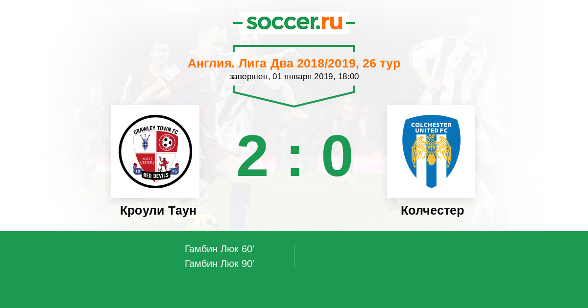 Кроули Таун - Колчестер: обзор матча 1 января 2019