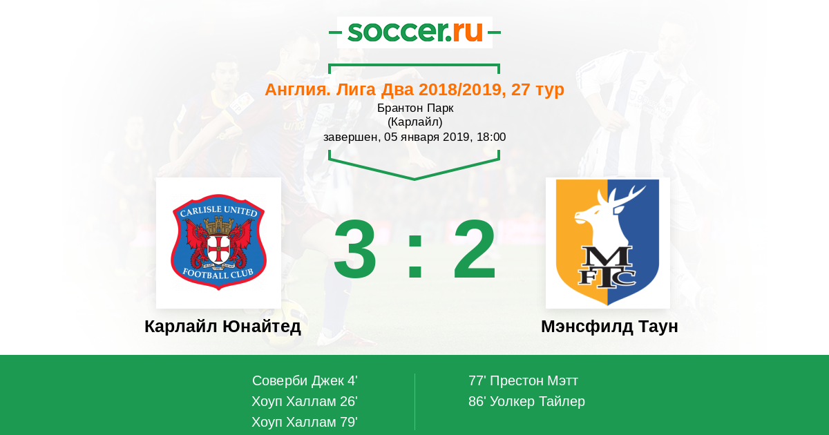 Карлайл Юнайтед - Мэнсфилд Таун: обзор матча 5 января 2019