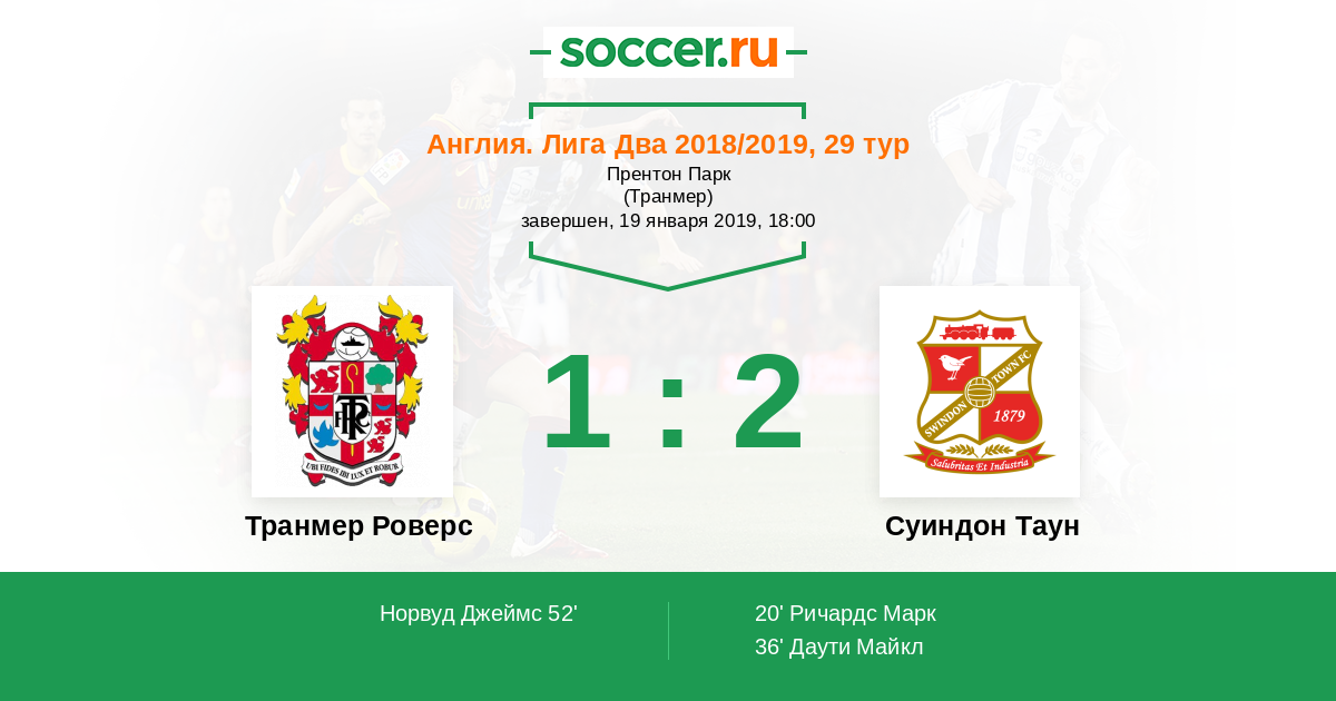Транмер Роверс - Суиндон Таун: обзор матча 19 января 2019