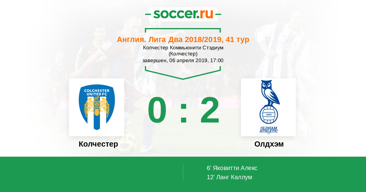 Колчестер - Олдхэм: обзор матча 6 апреля 2019