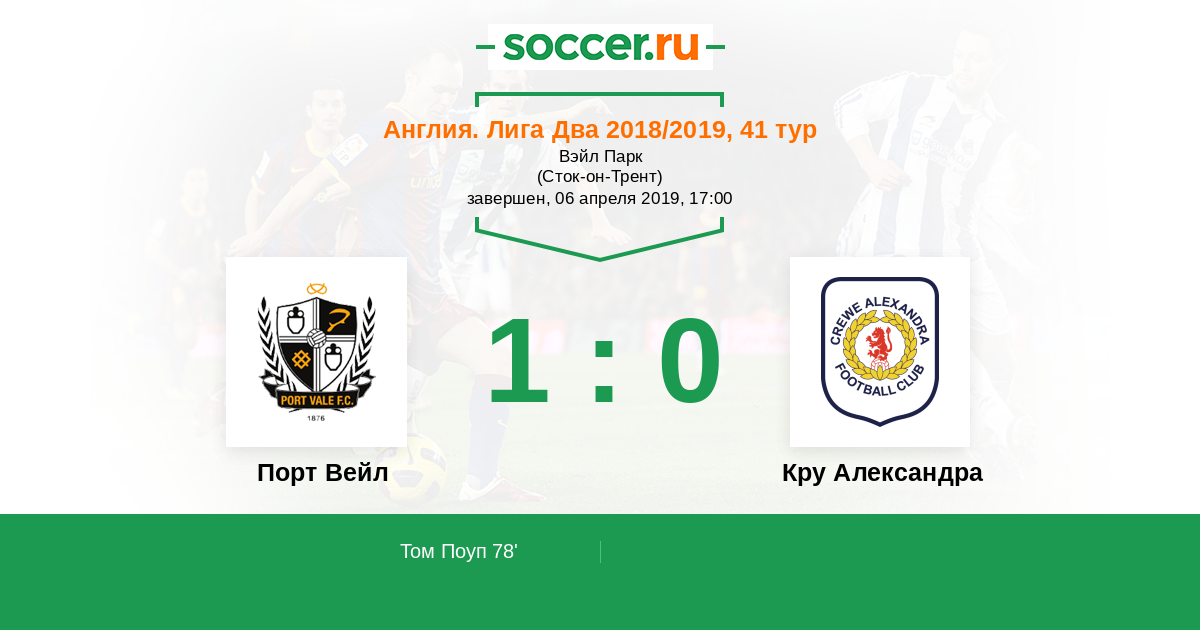 Порт Вейл - Кру Александра: обзор матча 6 апреля 2019