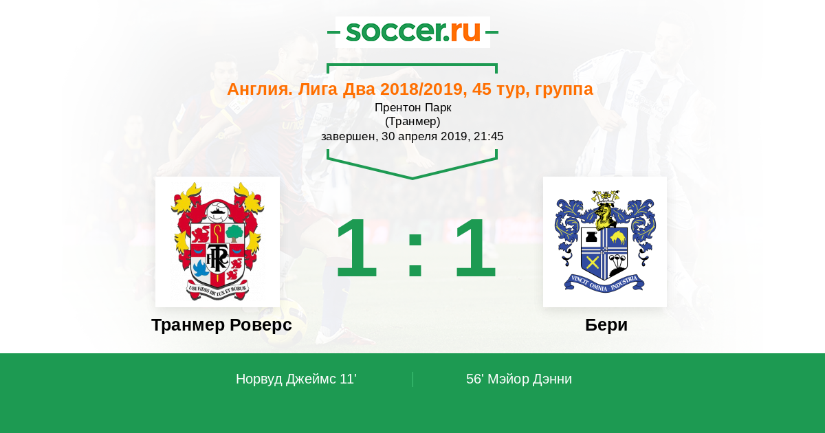 Транмер Роверс - Бери: обзор матча 30 апреля 2019