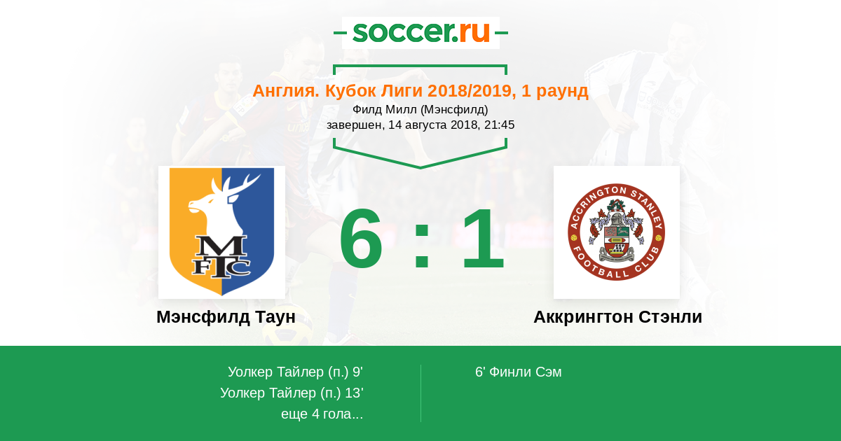 Мэнсфилд Таун - Аккрингтон Стэнли: обзор матча 14 августа 2018
