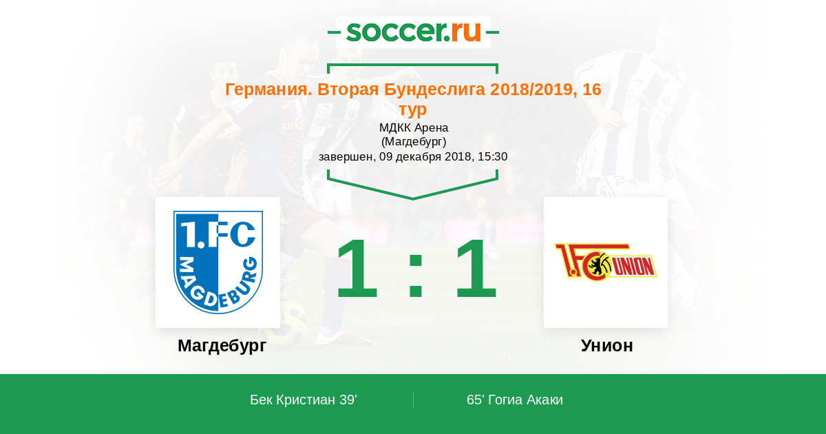 Магдебург - Унион: обзор матча 9 декабря 2018