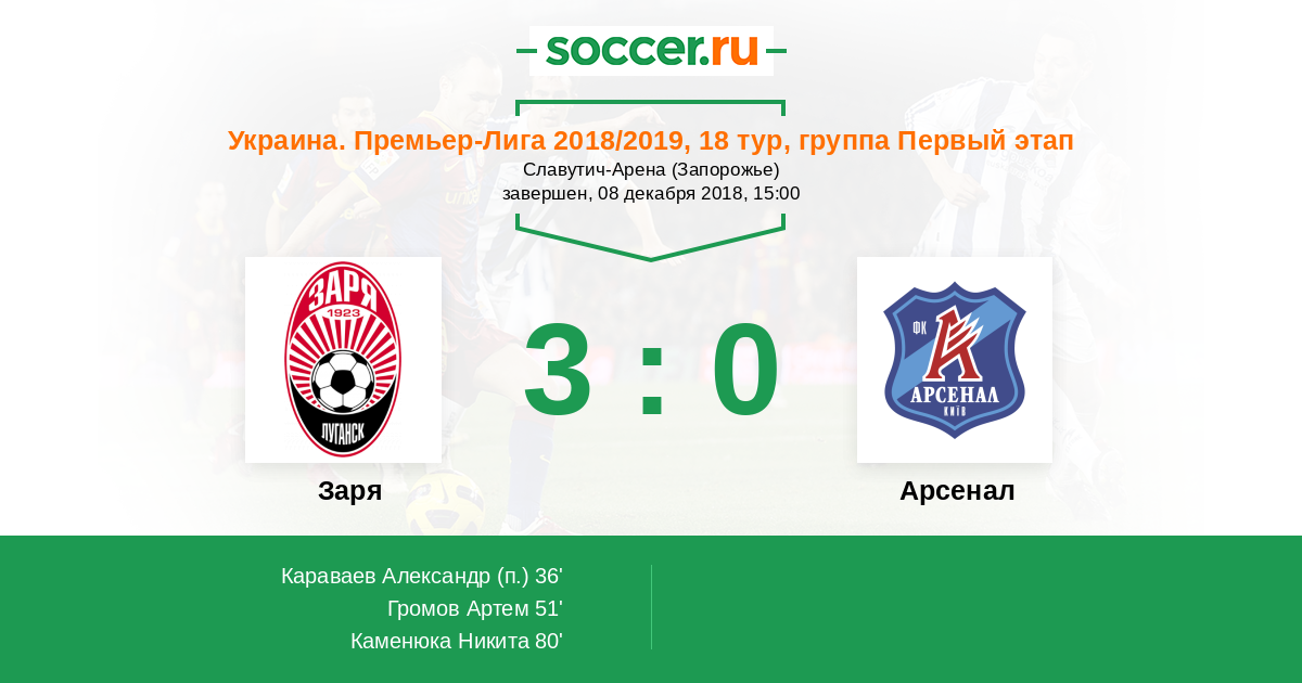 Заря - Арсенал: обзор матча 8 декабря 2018