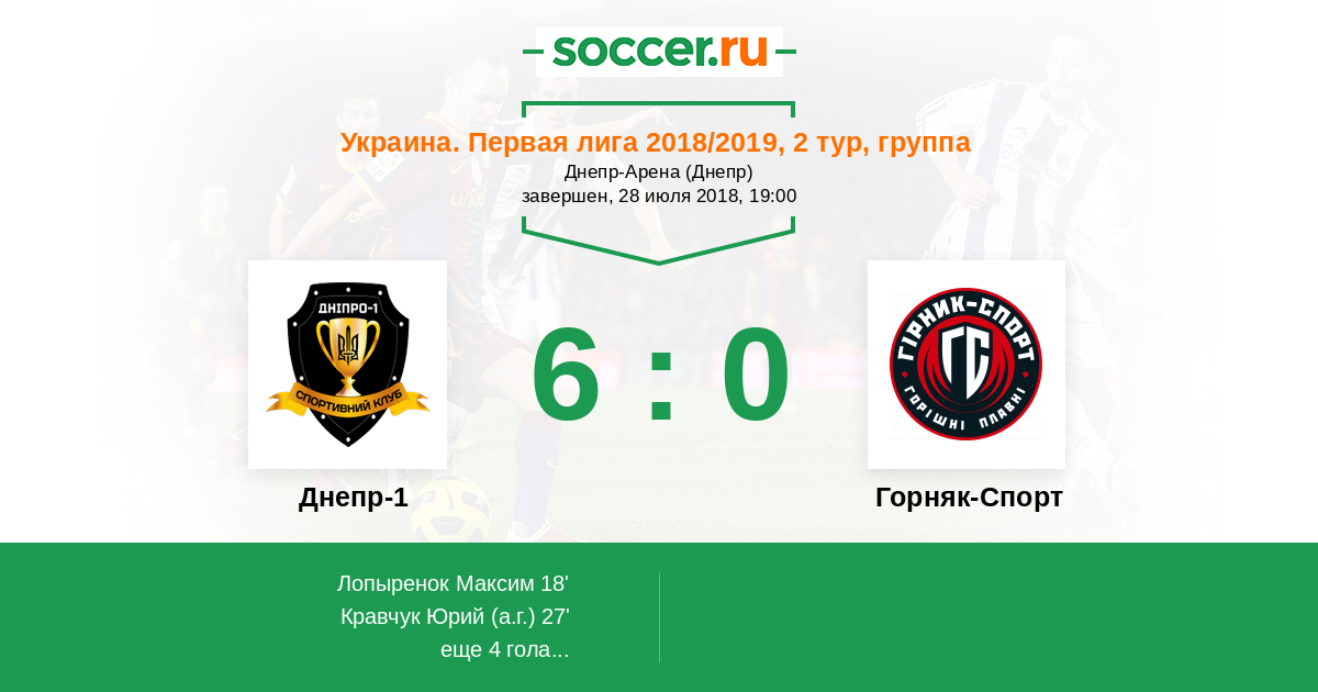 Днепр-1 - Горняк-Спорт: обзор матча 28 июля 2018