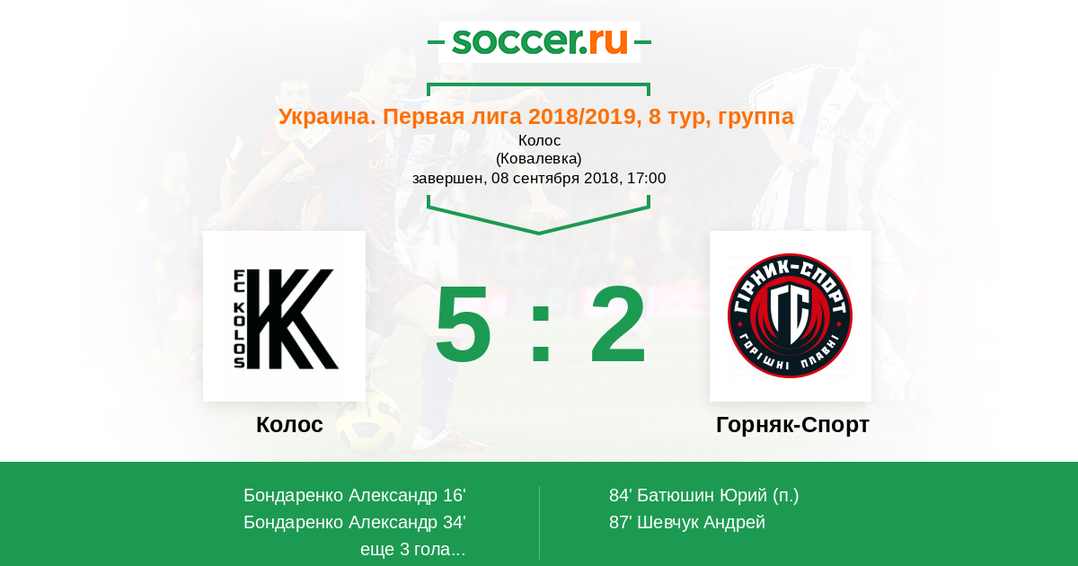 Колос - Горняк-Спорт: обзор матча 8 сентября 2018