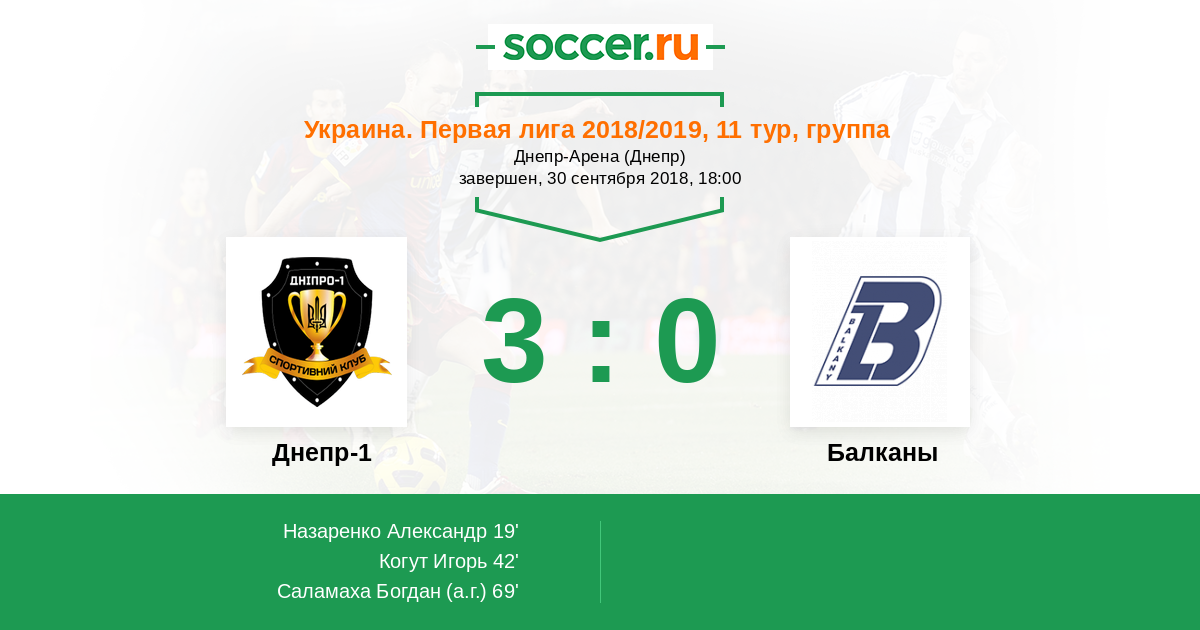 Днепр-1 - Балканы: обзор матча 30 сентября 2018