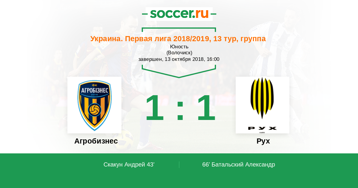 Агробизнес - Рух: обзор матча 13 октября 2018