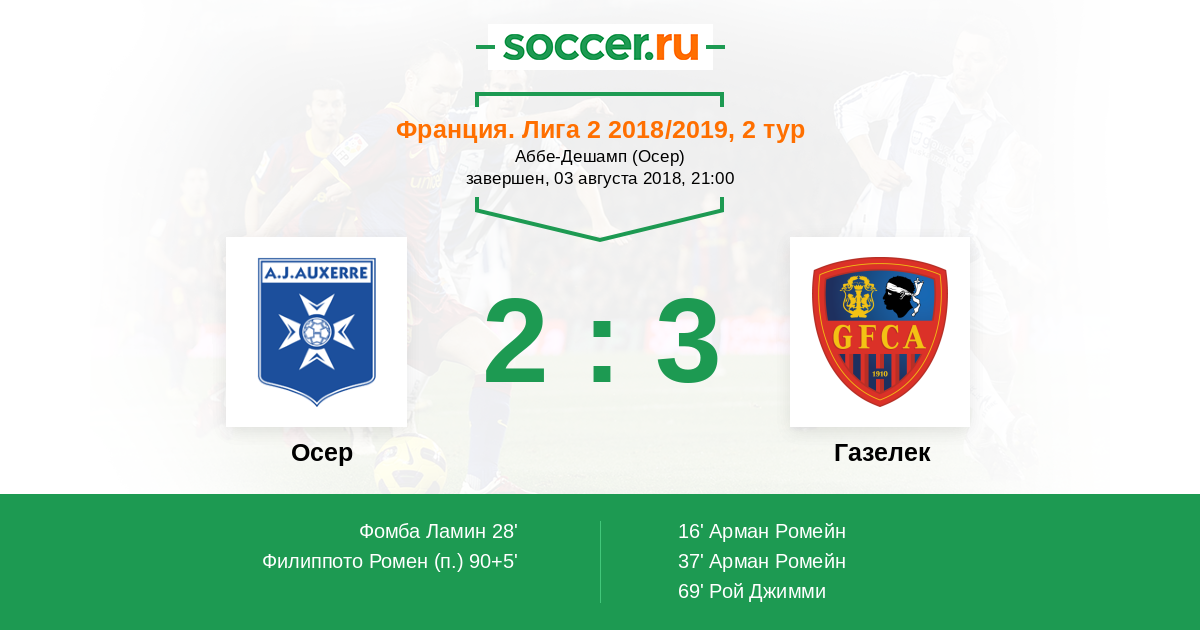 Осер - Газелек: обзор матча 3 августа 2018