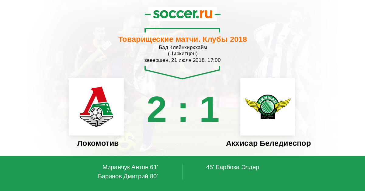 Локомотив - Акхисар Беледиеспор: обзор матча 21 июля 2018