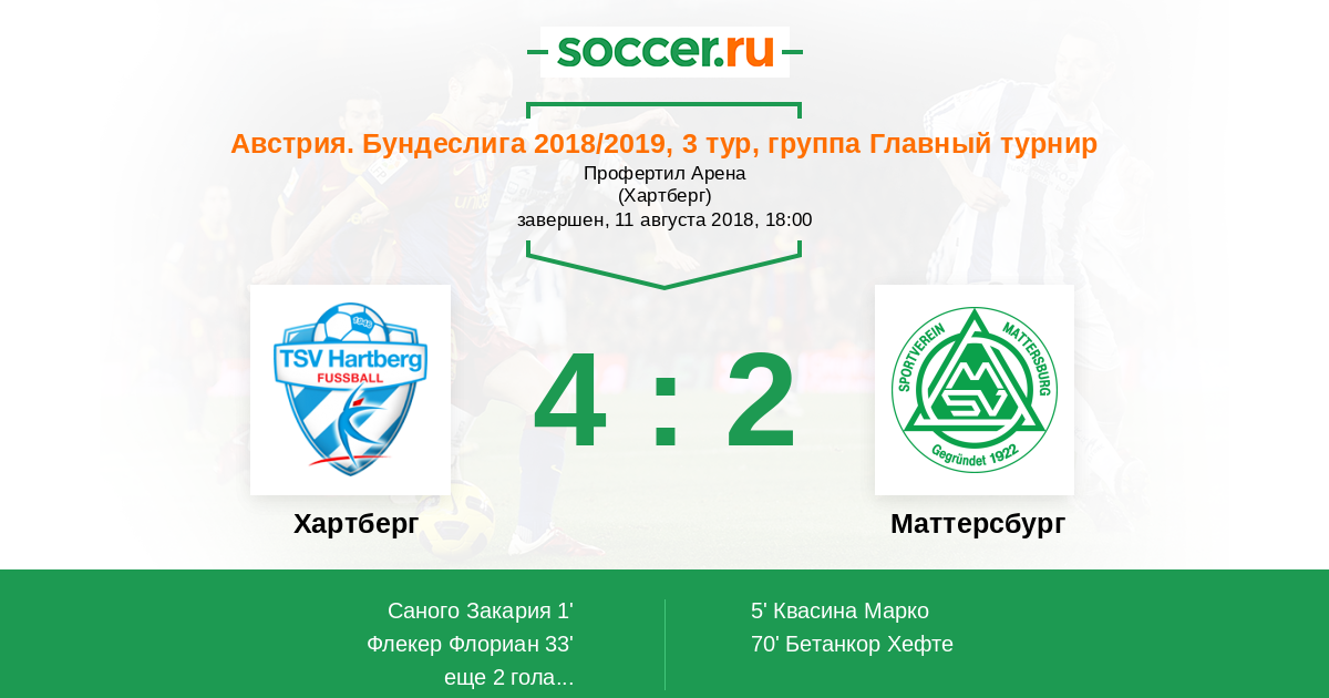 Хартберг - Маттерсбург: обзор матча 11 августа 2018