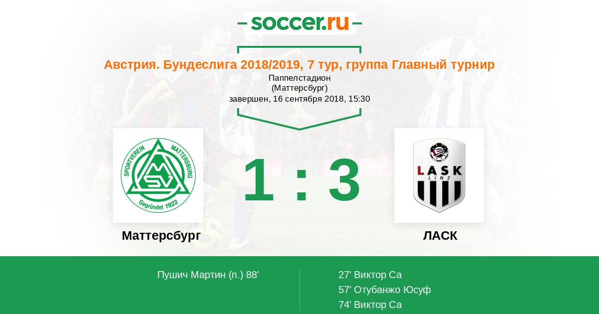 Маттерсбург - ЛАСК: обзор матча 16 сентября 2018