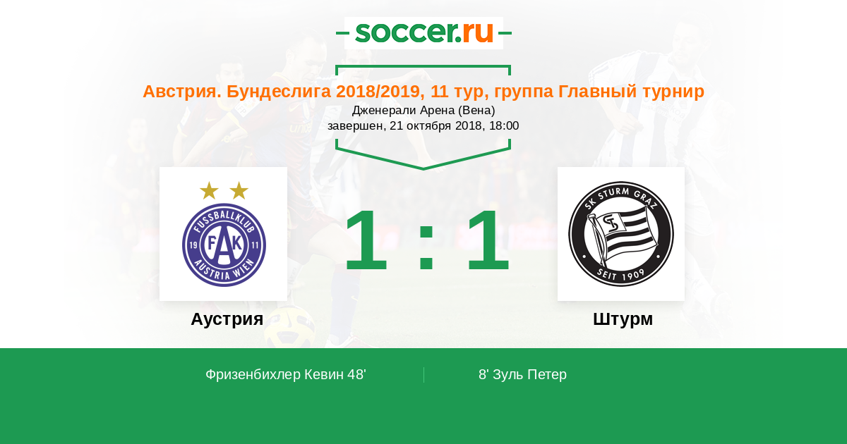 Аустрия - Штурм: обзор матча 21 октября 2018