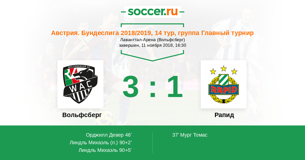 Вольфсберг - Рапид: обзор матча 11 ноября 2018