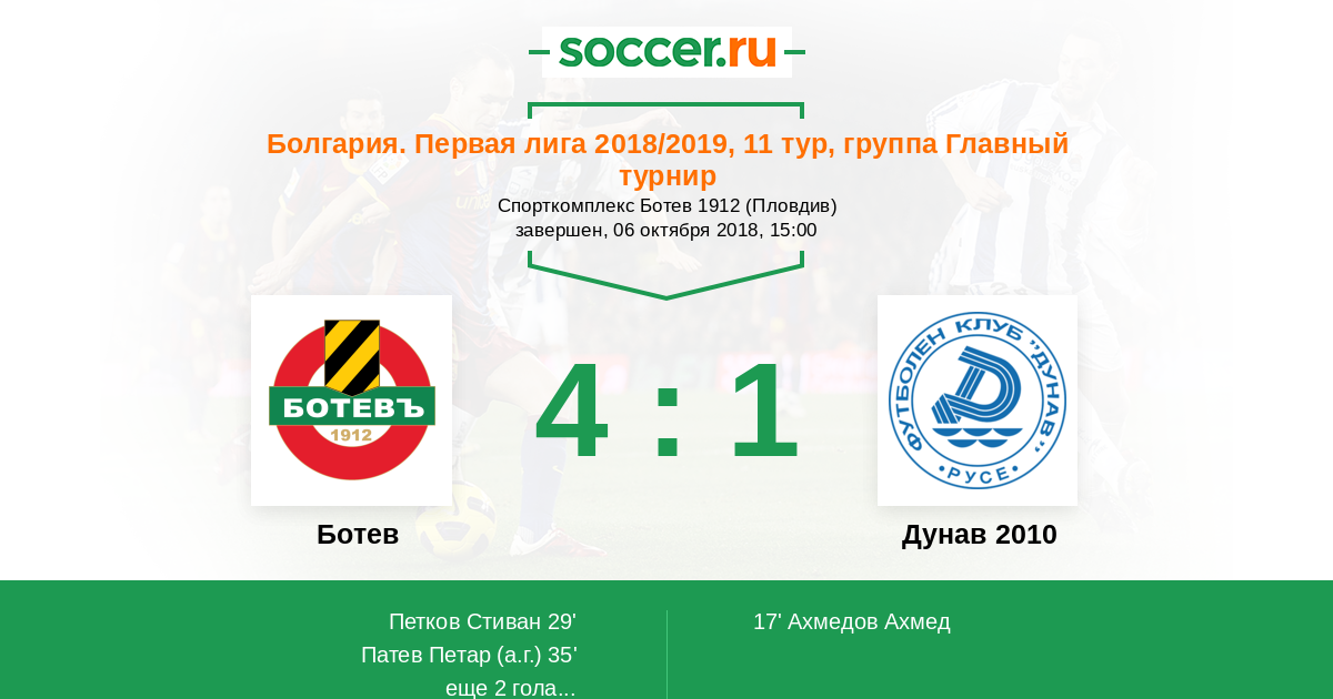 Ботев - Дунав 2010: обзор матча 6 октября 2018