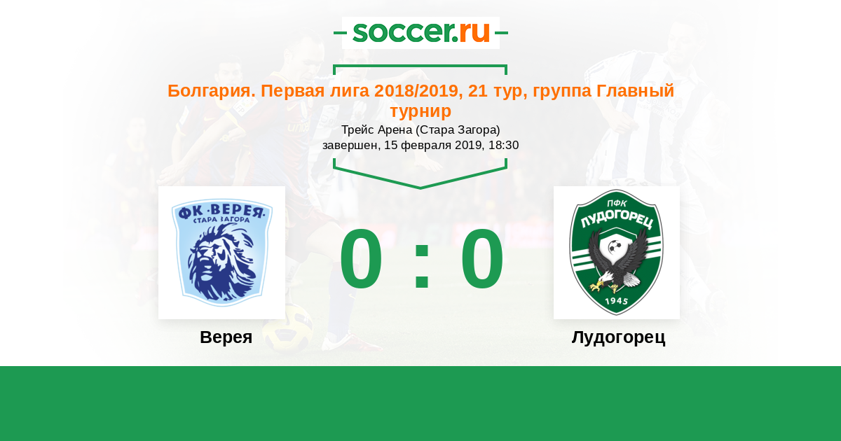 Верея - Лудогорец: обзор матча 15 февраля 2019