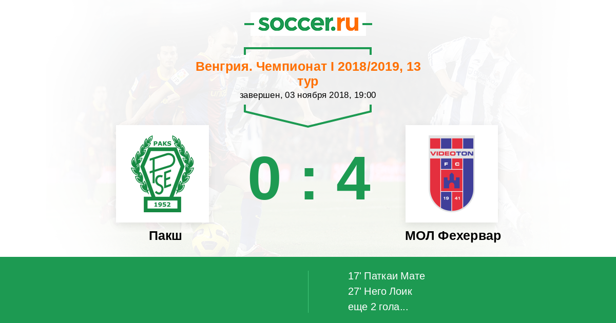 Пакш - МОЛ Види: обзор матча 3 ноября 2018