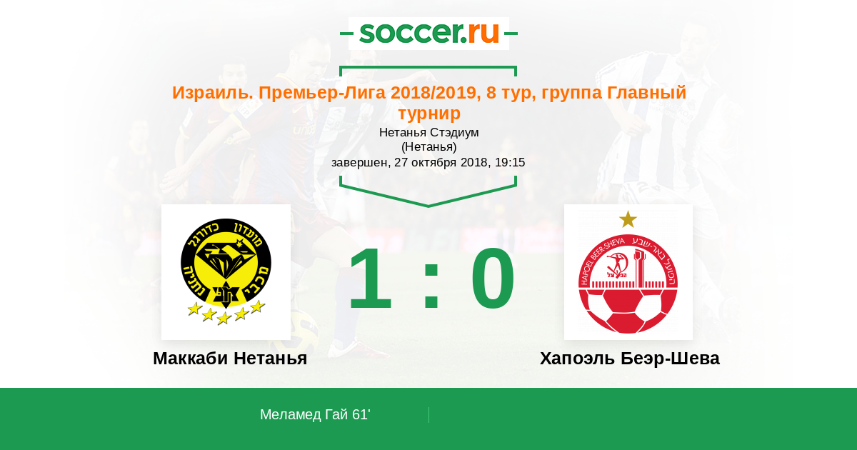 Маккаби Нетанья - Хапоэль Беэр-Шева: обзор матча 27 октября 2018