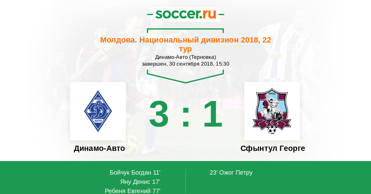 Динамо-Авто - Сфынтул Георге: обзор матча 30 сентября 2018