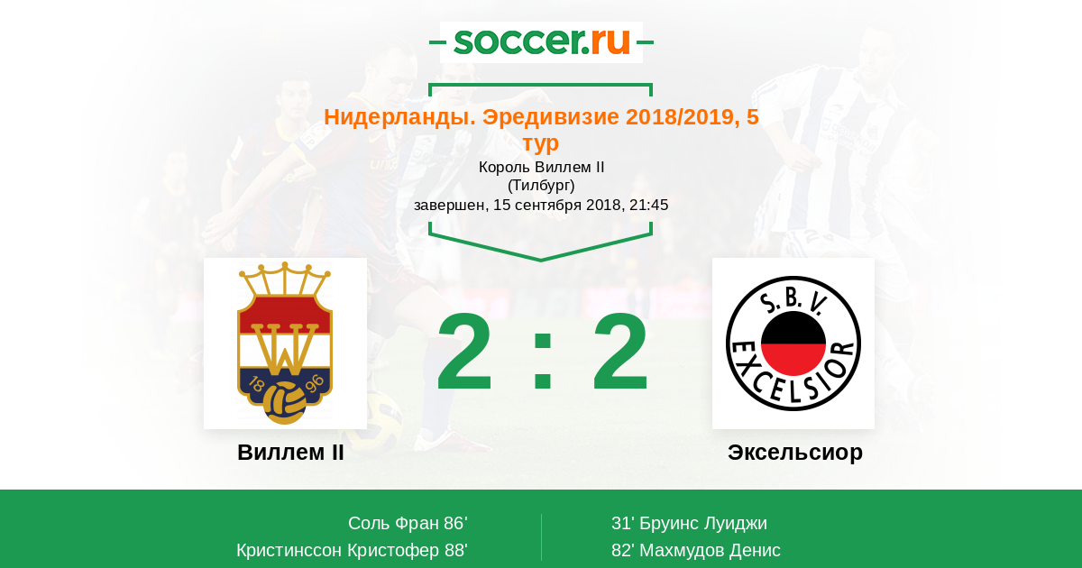 Виллем II - Эксельсиор: обзор матча 15 сентября 2018
