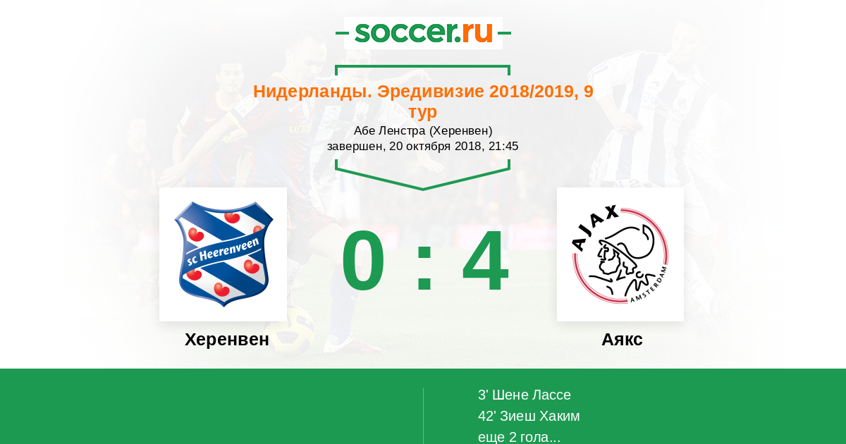 Херенвен - Аякс: обзор матча 20 октября 2018