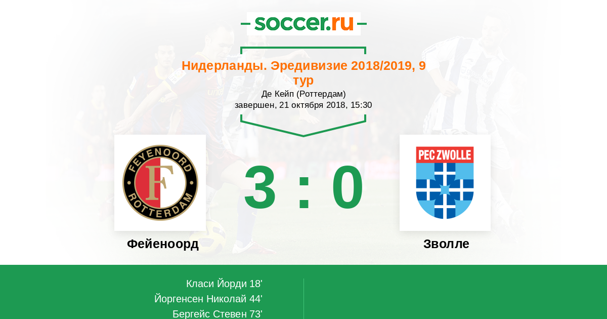 Фейеноорд - Зволле: обзор матча 21 октября 2018