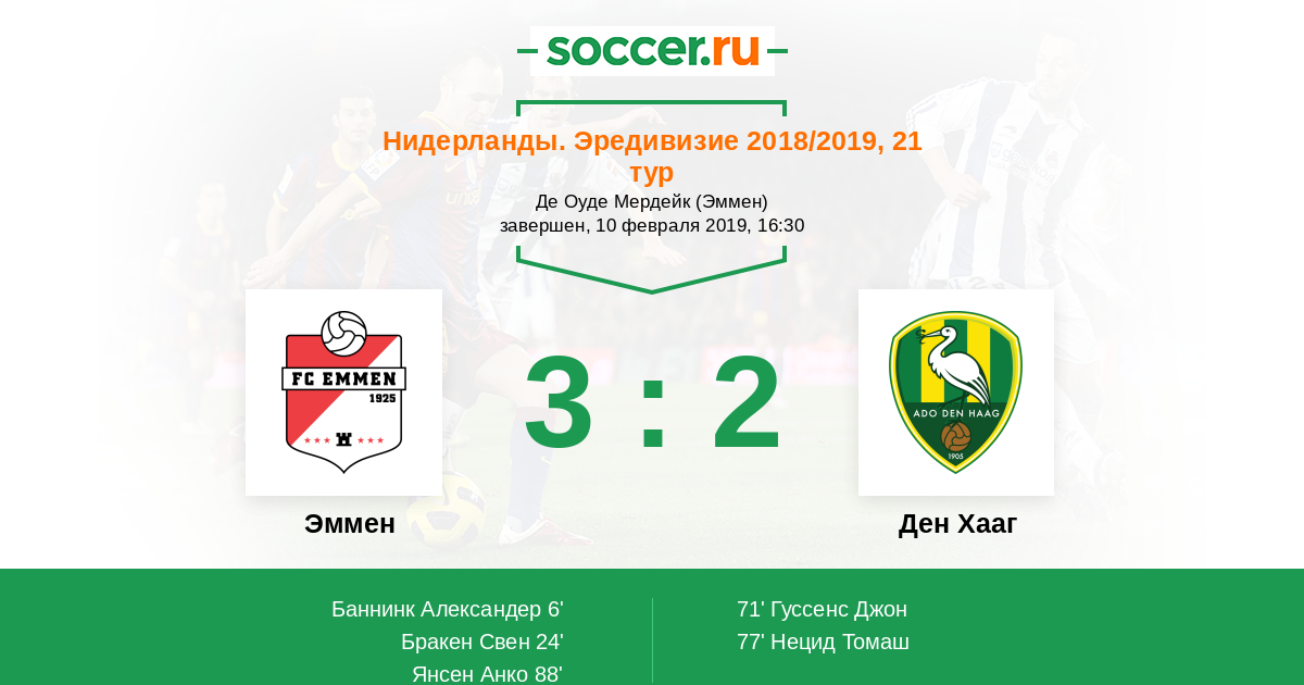 Эммен - Ден Хааг: обзор матча 10 февраля 2019