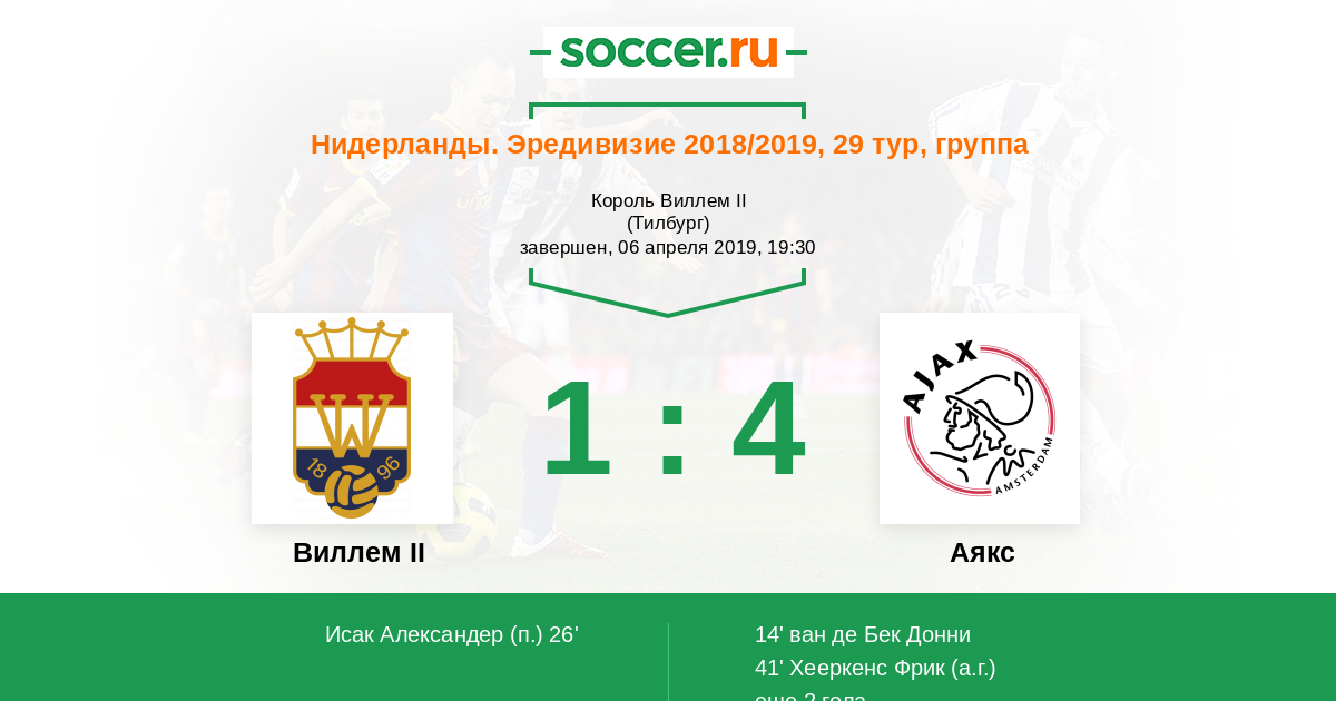 Виллем II - Аякс: обзор матча 6 апреля 2019