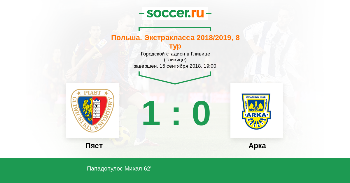 Пяст - Арка: обзор матча 15 сентября 2018