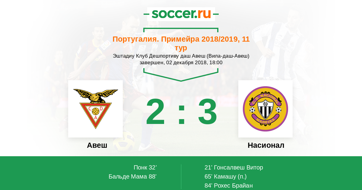 Авеш - Насионал: обзор матча 2 декабря 2018