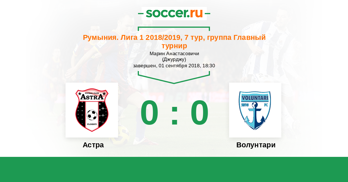 Астра - Волунтари: обзор матча 1 сентября 2018