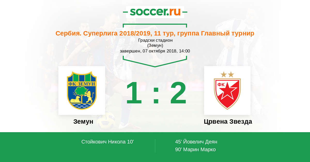Земун - Црвена Звезда: обзор матча 7 октября 2018