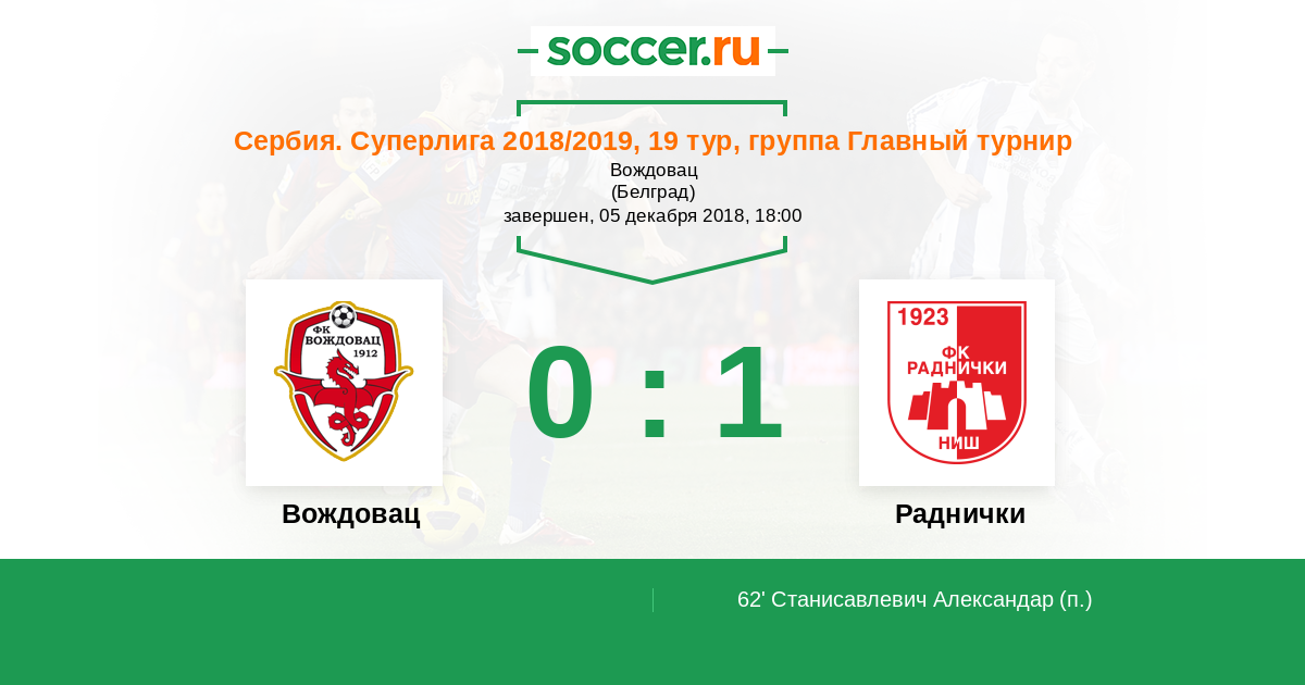 Вождовац - Раднички: обзор матча 5 декабря 2018