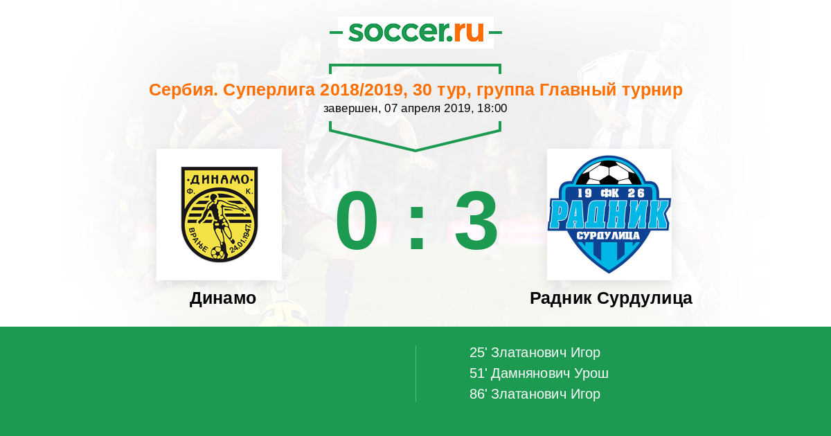 Динамо - Радник Сурдулица: обзор матча 7 апреля 2019