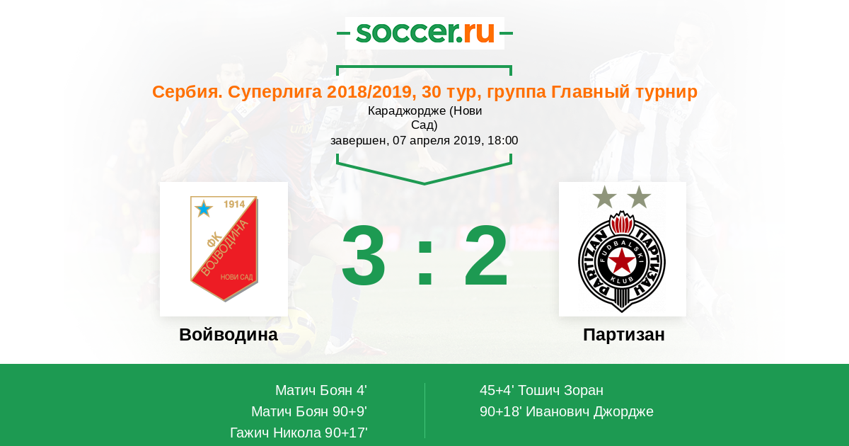 Войводина - Партизан: обзор матча 7 апреля 2019