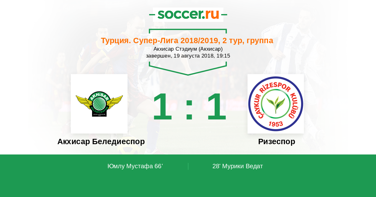 Акхисар Беледиеспор - Ризеспор: обзор матча 19 августа 2018
