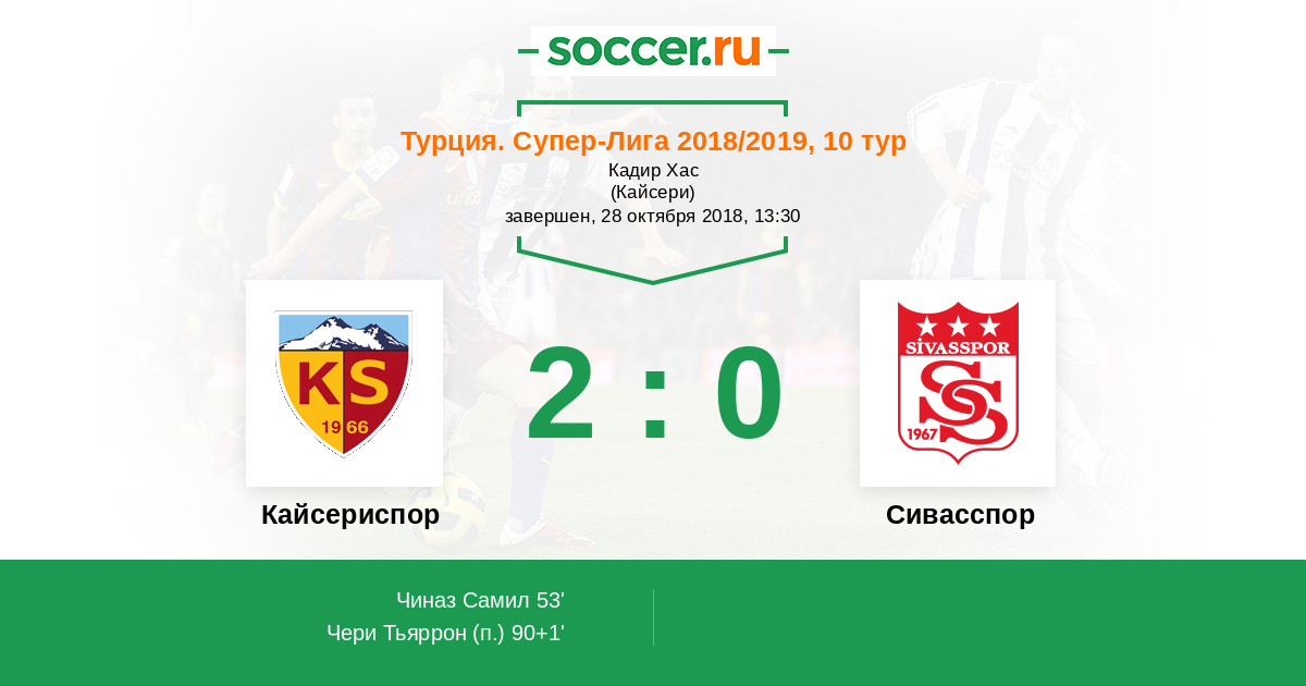 Кайсериспор - Сивасспор: обзор матча 28 октября 2018