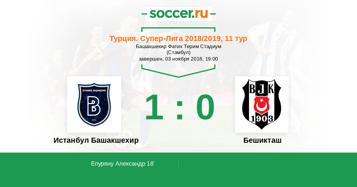 Истанбул Башакшехир - Бешикташ: обзор матча 3 ноября 2018