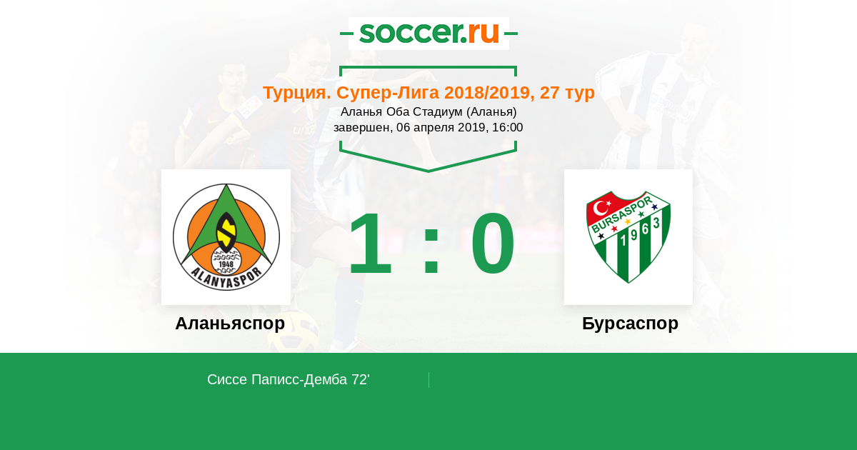 Аланьяспор - Бурсаспор: обзор матча 6 апреля 2019