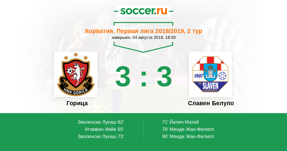 Горица - Славен Белупо: обзор матча 4 августа 2018