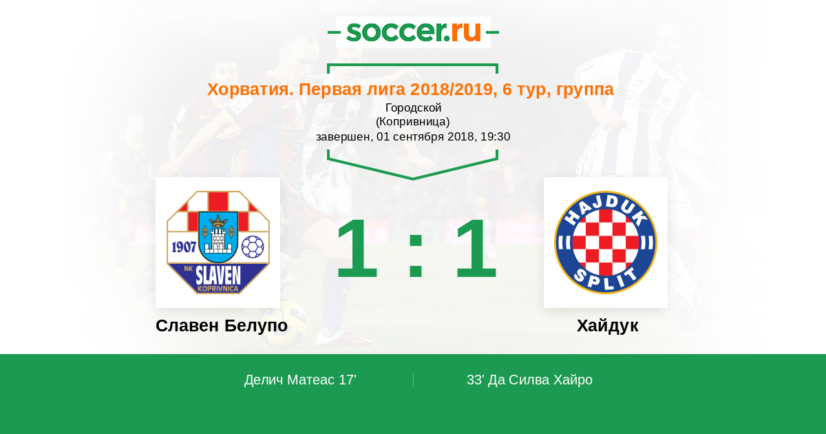 Славен Белупо - Хайдук: обзор матча 1 сентября 2018